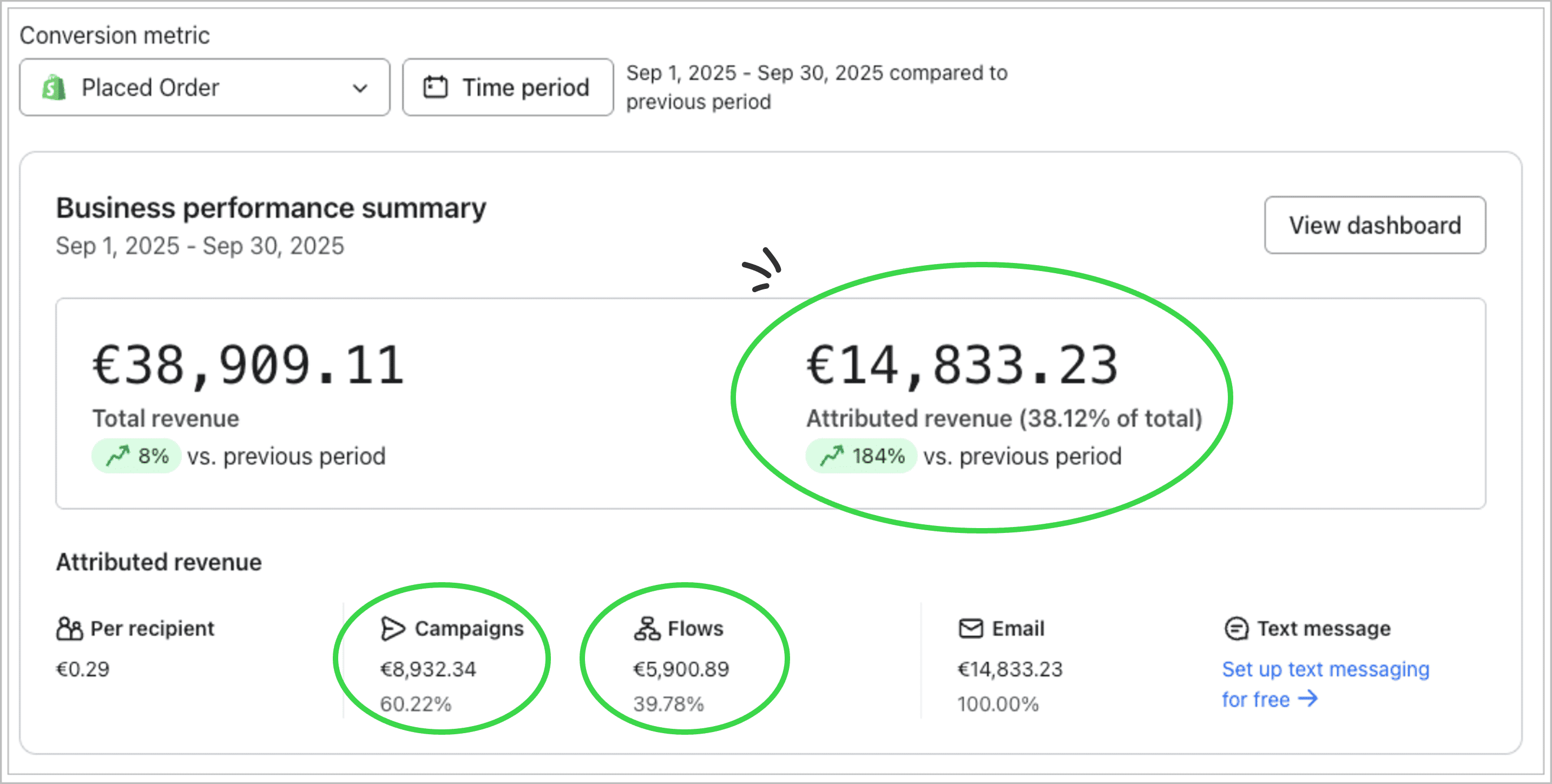 ✅ €[14,833.23] New attributed email revenue (up from €5,733.82)