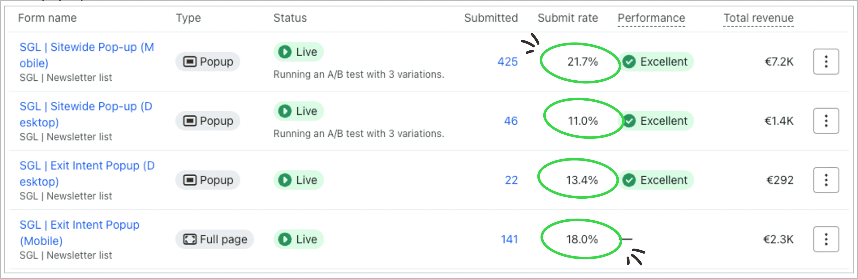 ❌ A already good opt-in rate on pop-ups: 12,23%